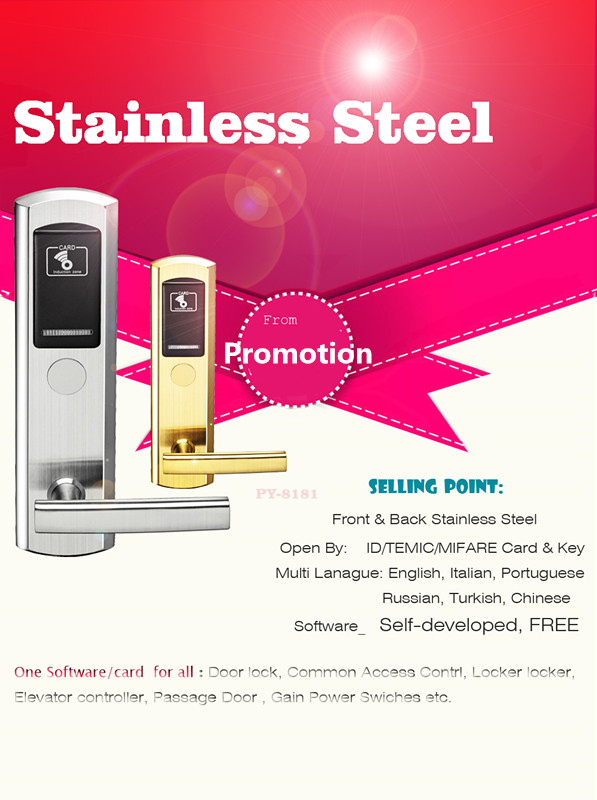 By the way, We have promotion about our full stainless steel PY8181Y rfid card electronic hotel lock